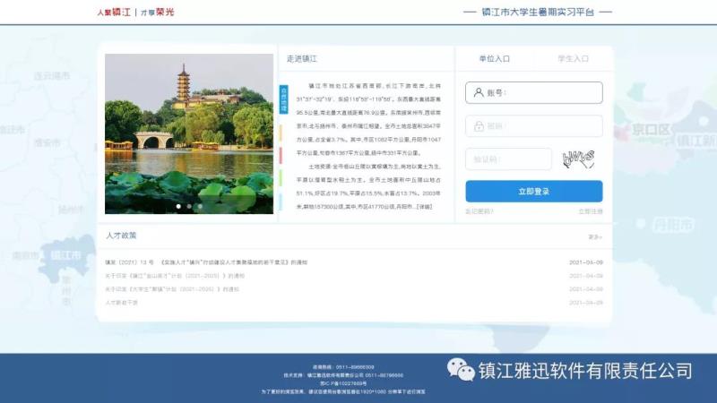 近日,由公司承辦的“鎮(zhèn)江市大學(xué)生暑期實習(xí)平臺”交付客戶使用。該平臺由市人才辦、團市委、市人社局聯(lián)合共建,平臺建設(shè)積極響應(yīng)了市委市政府產(chǎn)業(yè)強市“一號戰(zhàn)略”要求,深入推進大學(xué)生“聚鎮(zhèn)”計劃,引導(dǎo)更多大學(xué)生走近鎮(zhèn)江、了解鎮(zhèn)江、融入鎮(zhèn)江,促進青年人才在鎮(zhèn)集聚發(fā)展。