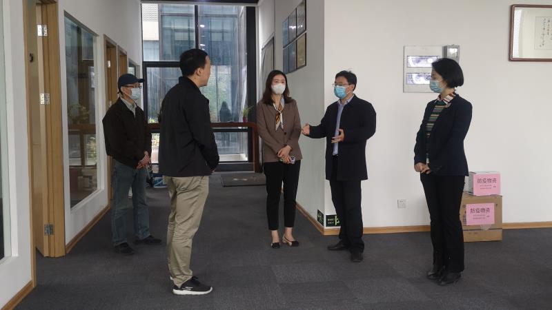 2022年4月28日,京口區(qū)委組織部周部長、科技鎮(zhèn)長團(tuán)京口團(tuán)陳團(tuán)長、京口區(qū)大禹山創(chuàng)意新社區(qū)顧主任、京口區(qū)科技鎮(zhèn)長團(tuán)王書記等一行人蒞臨我司了解企業(yè)產(chǎn)業(yè)鏈涉疫問題矛盾和疫情之下企業(yè)經(jīng)營情況并捐贈防疫相關(guān)物資。